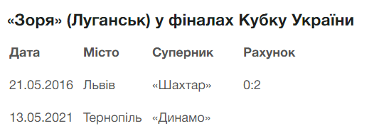 13 травня в Тернополі відбудеться фінальний матч Кубку України-2020/2021 «Динамо» (Київ) - «Зоря» (Луганськ). Нагадаємо попередній досвід «Зорі» у вирішальних матчах.