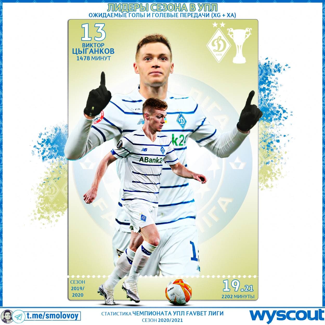 Виктор Цыганков - обладатель наибольшей суммы ожидаемых голов и голевых передач в сезоне УПЛ 2020/2022