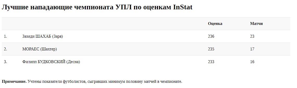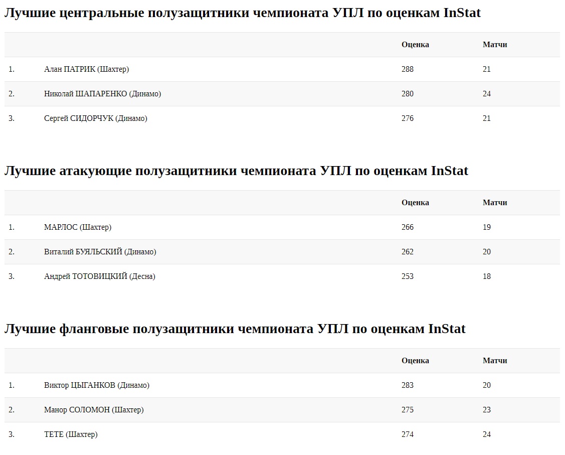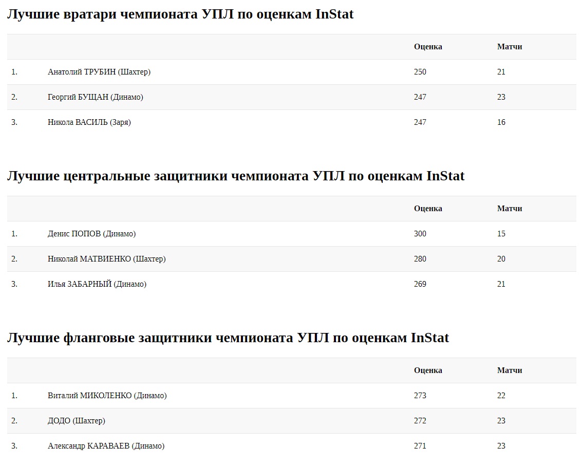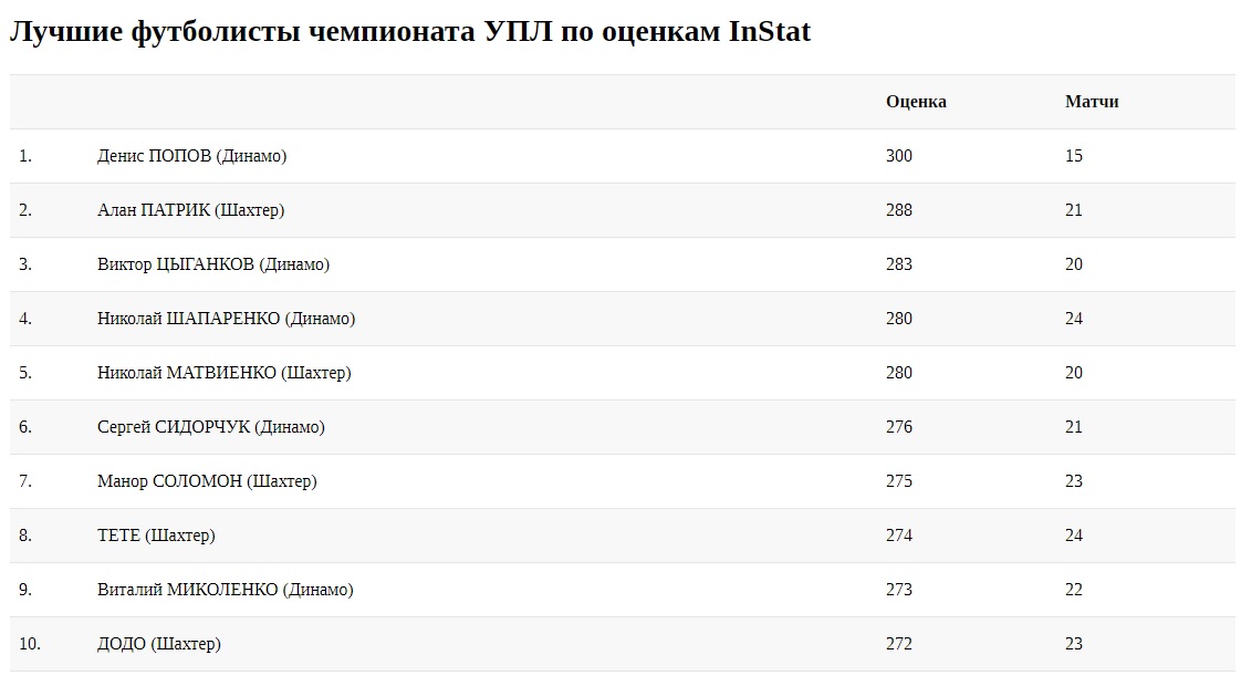 Самым полезным футболистом завершившегося чемпионата УПЛ по средним оценкам InStat стал защитник Динамо Денис Попов, пишет zbirna.com. В десятку лучших игроков сезона попали по пять представителей Динамо и Шахтера. Там оказалось шесть украинцев и четыре легионера.