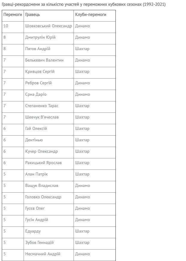 Непосредственные участники победных кубковых сезонов. Шовковский - вне конкуренции