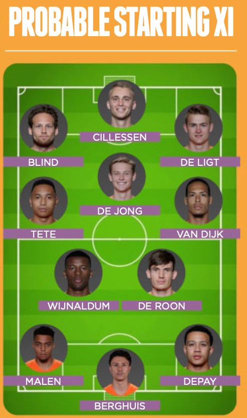 Игрок в центре внимания. Мемфис Депай, несомненно, звезда этой голландской команды. 27-летний футболист играет в свой лучший футбол в нынешнем сезоне - он забил 16 голов и сделал 9 передач за "Лион" во всех соревнованиях. Большая часть креатива и голов Нидерландов может исходить от него, поэтому в этой команде за ним, безусловно, стоит понаблюдать.