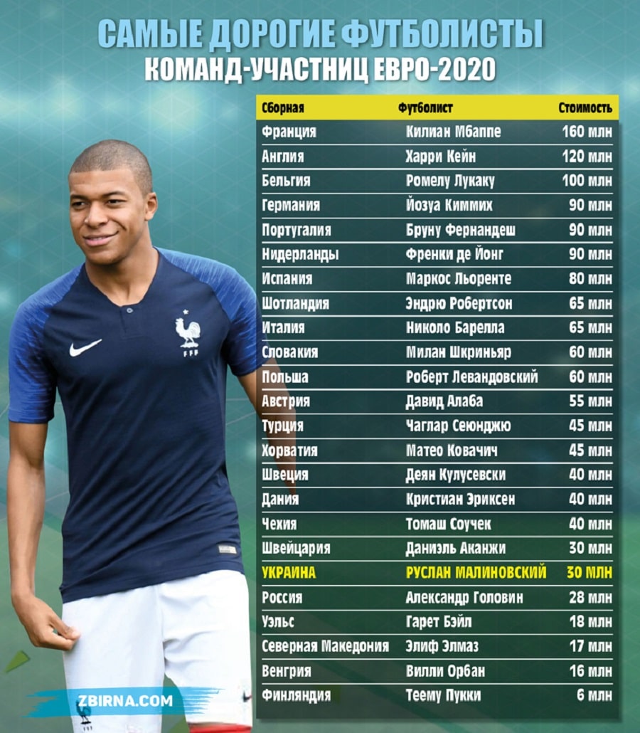 Малиновский, Мбаппе, Кейн, Лукаку и еще 20 миллионеров на Евро-2020
