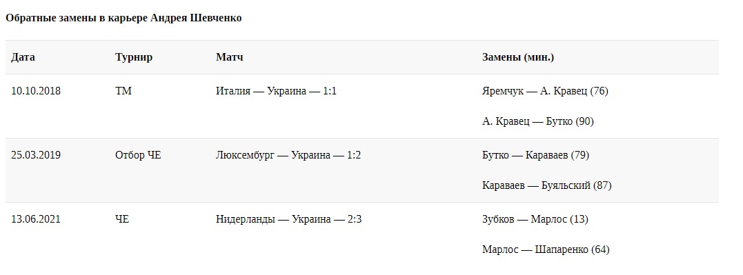 Это третья обратная замена в истории сборной Украины за время работы Шевченко. Ранее в 2018-м в «товарняке» с Италией Артем Кравец вышел вместо Романа Яремчука, но спустя 14 минут уступил место на поле Богдану Бутко. А в следующем году в отборе на Евро-2020 с Люксембургом из-за травмы не смог доиграть уже Александр Караваев, пробывший на поле восемь минут.