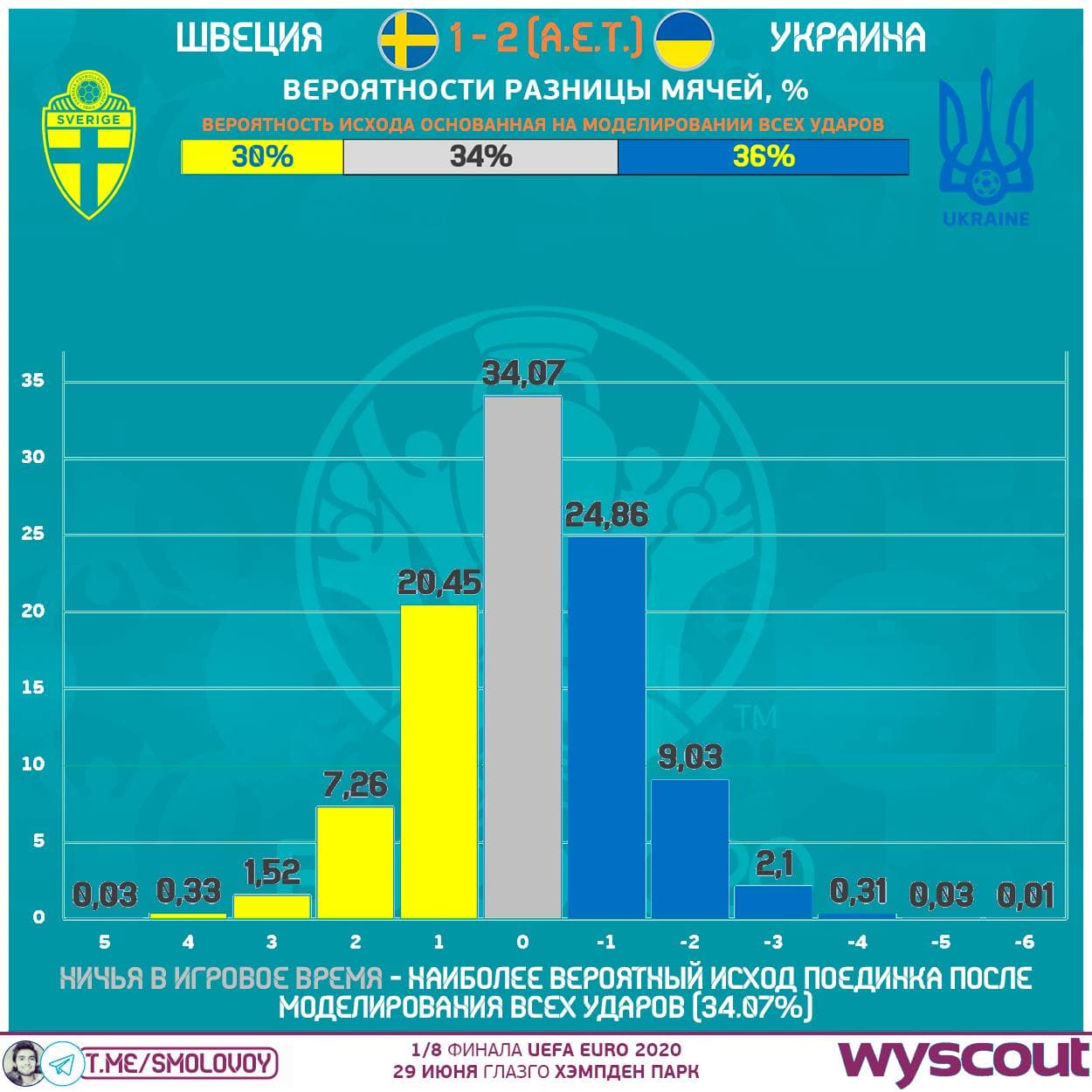 - 9.03% симуляций давали нам победу в 2 мяча, Швеции - 7.26%