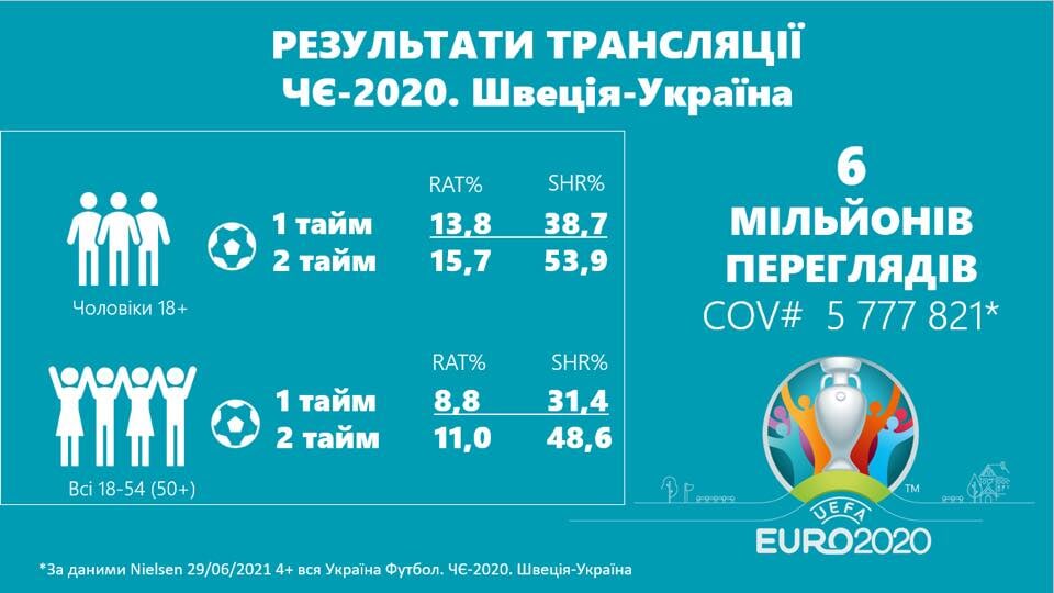 Матч Украина – Швеция посмотрели почти 5,8 млн зрителей
