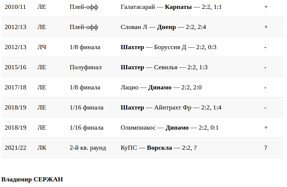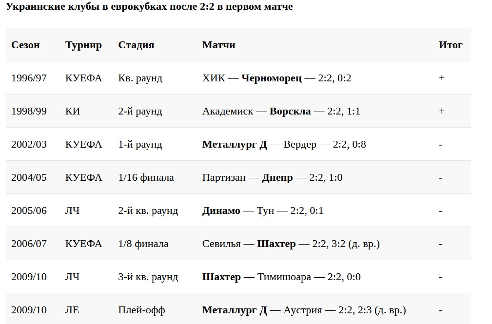 Всего семь наших команд играли вничью 2:2 в стартовом поединке. Это Шахтер (5 раз), Динамо (3), Ворскла (2), Металлург Д (2), Днепр (2), Черноморец (1) и Карпаты (1). Их оппонентами были 15 команд, причем Севилья противостояла горнякам дважды. Соперниками выступали представители 12-ти стран. Лидируют Германия (3 дуэли), следом идут Испания (2) и Финляндия (2).