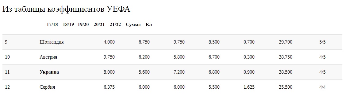 Таблица коэффициентов УЕФА. Сенсационная потеря Украины: сами загоняем себя в угол