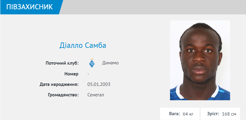 Киевский клуб дозаявил по списку Б 18-летнего представителя Сенегала Самба Диалло.