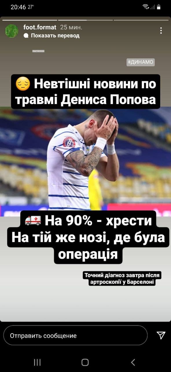 Как сообщается в Instagram "Футбольного формата", Денис Попов получил серьезную травму и рискует выбыть из обоймы на длительный срок.