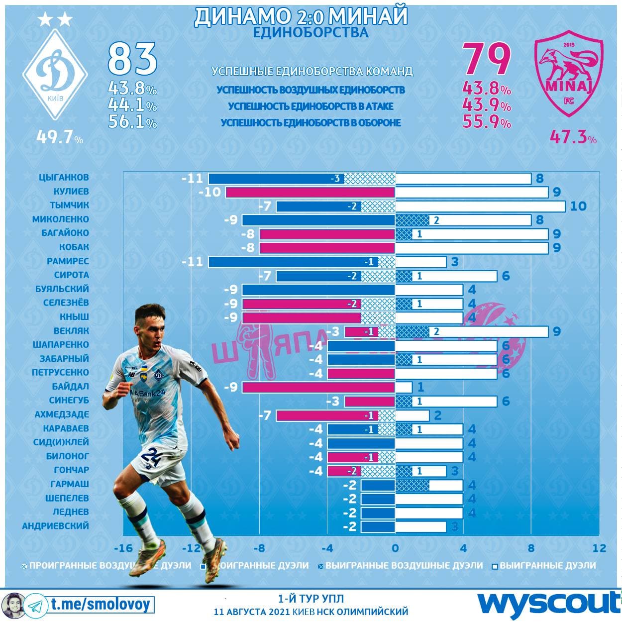 Блогер Михаил Смоловой поделился новой статистикой по матчу "Динамо" - "Минай" (2:0).