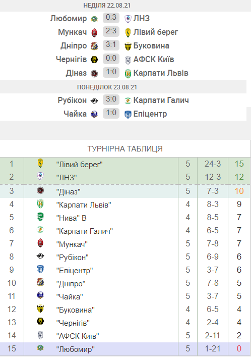 Без втрат у цій групі виступає дебютант - «Лівий берег». Проте кияни ледь не поплатилися в матчі з «Mункачем» за шапкозакидацький настрій. Підопічні Анатолія Бузніка в гостях вели перед - 3:0, але зменшили оберти й двічі пропустили. Столична команда зі скрипом втримала переможний рахунок.