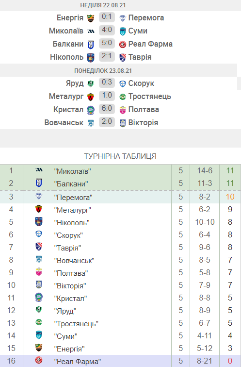 А в групі «Б» лідерство захопили команди, які добровільно понизилися в класі - «Mиколаїв» і «Балкани». У Mиколаєві на поєдинку із «Сумами», в якому господарі взяли гору (4:0), були присутні лише 350 уболівальників, і це після того, як підопічні Сергія Шевченка в кубковому протистоянні змусили минулого тижня зійти з дистанції першоліговий «Кривбас». У свою чергу, «Балкани» розгромили «Реал Фарму» - 5:0.
