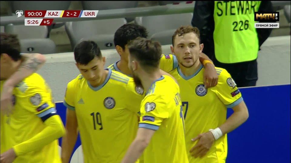 Сборная Казахстана по футболу сыграла вничью с Украиной (2:2) в домашнем матче отбора на ЧМ-2022.