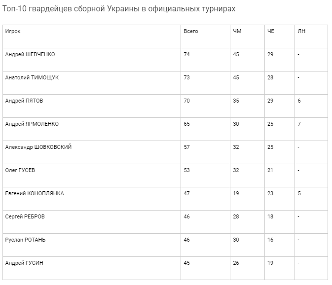 Рубеж в 70 матчей, помимо Пятова, преодолело всего 2 футболиста – Анатолий Тимощук (73) и Андрей Шевченко (74).