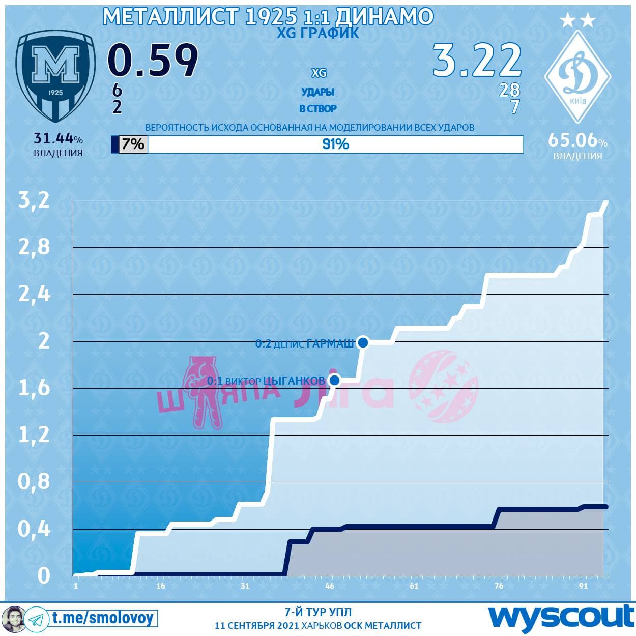 Блогер Михаил Смоловой в своем Telegram-канале анализирует игру "Динамо" против "Металлиста 1925".