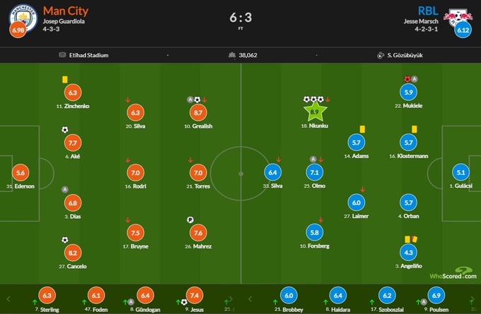 По оценкам WhoScored, Зинченко стал одним из худших в своей команде. Украинец получил 6.3 балла, такую же оценку получили Бернарду Силва и Рахим Стерлинг. Ниже этой оценки получили вратарь Эдерсон (5.6) и хавбек Фил Фоден (6.1).