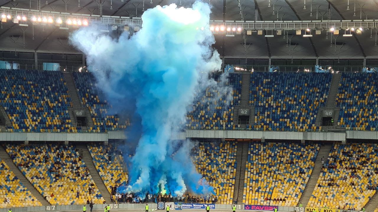 Во время матча "Динамо" - "Александрия" в 8-м туре Премьер-лиги ультрас киевлян устроили пиротехническое шоу на трибуне, выполненное в бело-голубых цветах.