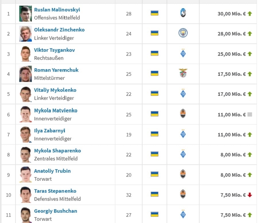 Топ-11 самых дорогих украинских футболистов прямо сейчас
