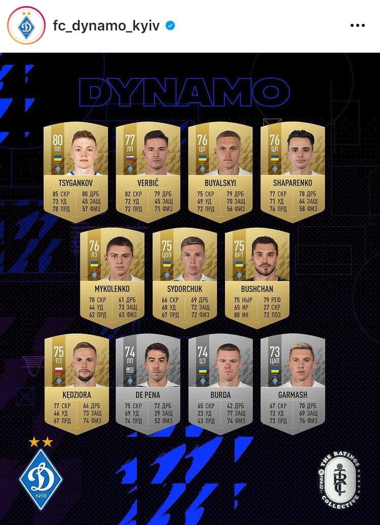 «Динамо» представило рейтинги футболистов команды в симуляторе FIFA 22.