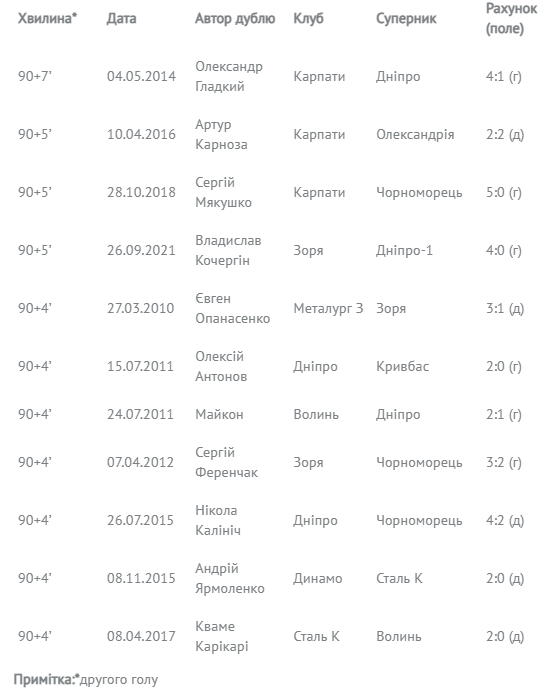 Поздние дубли в Чемпионатах Украины (1992 — 27.09.2021)