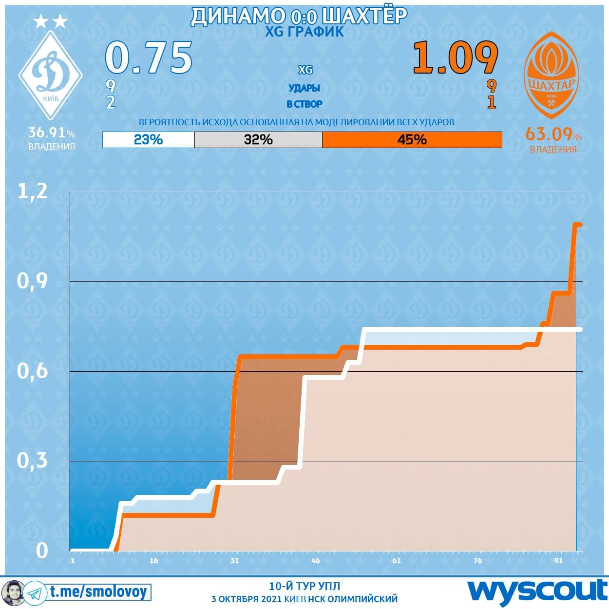 Блогер Михаил Смоловой в своем Телеграм-канале разбирает игру "Динамо" - "Шахтер".