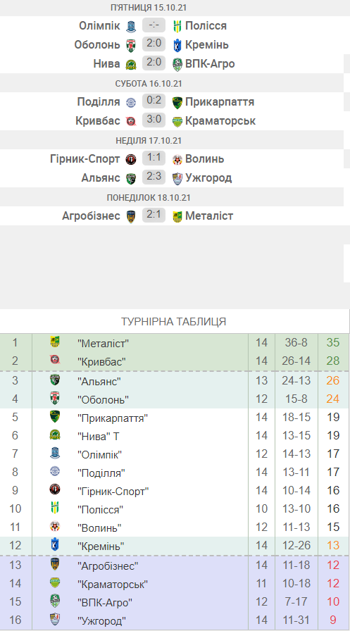 Вчера программа 14-го тура завершалась противостоянием в Волочиске, где один из аутсайдеров, «Агробизнес», принимал лидера — «Металлист». Хозяев не испугал статус соперника, и уже в дебюте Руслан Черненко открыл счет. Гости с ответом не замедлили: после розыгрыша стандартного положения Александр Мизюк выровнял положение. Однако подоляне продолжали остро атаковать правым флангом, и на 24-й минуте Игорь Бойчук в падении снова вывел «Агробизнес» вперед — 2:1.