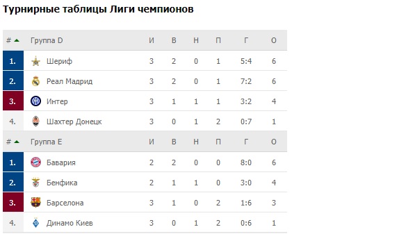 Донецкий «Шахтер» провел матчи против «Шерифа» (0:2), «Интера» (0:0), «Реала» (0:5).