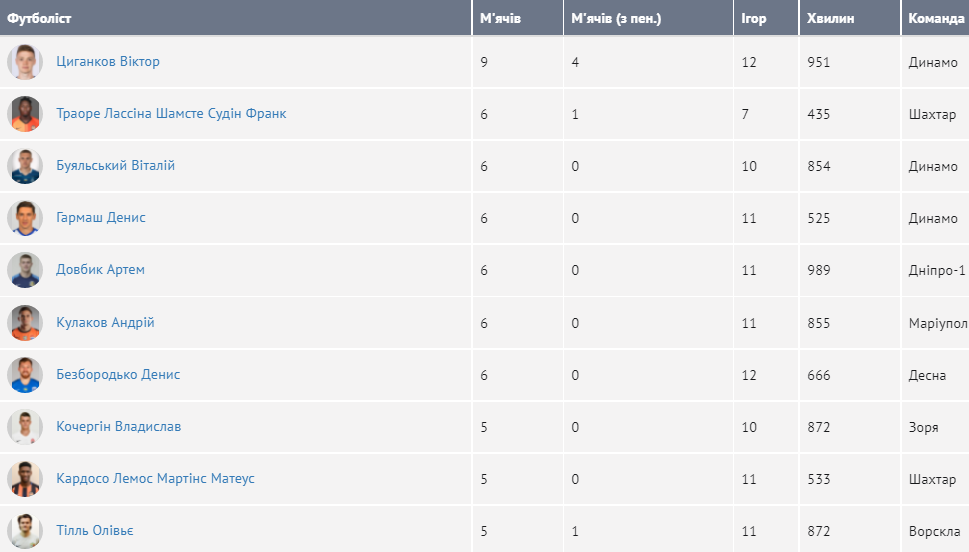 Цыганков уверенно лидирует, а Гармаш поравнялся с игроками,у которых по шесть точных ударов.