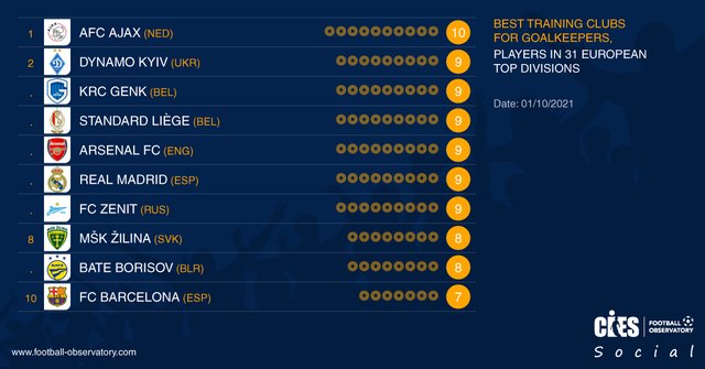 Академия "бело-синих" подготовила 9 киперов для ведущих европейских чемпионатов, сообщает официальный твиттер CIES.