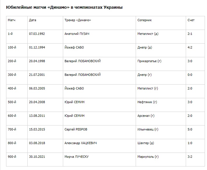 "Динамо" провело 900-й матч в чемпионатах Украины