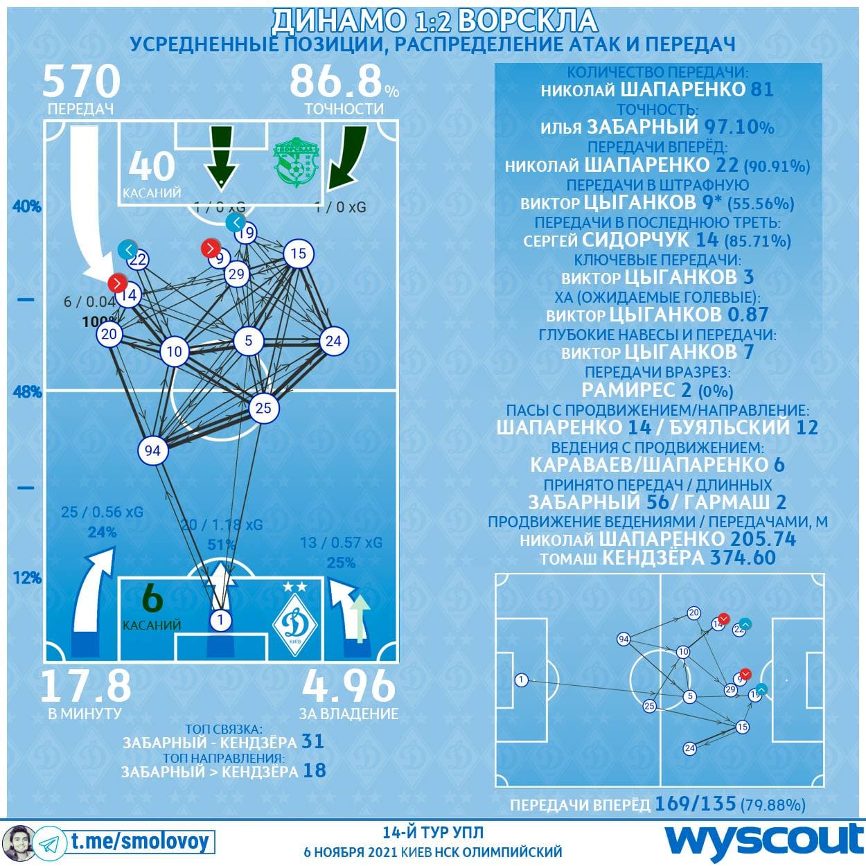 - 40% всех передач Динамо либо направлялись в финальную треть, либо были выполнены уже в финальной трети (один из лучших резов в сезоне)