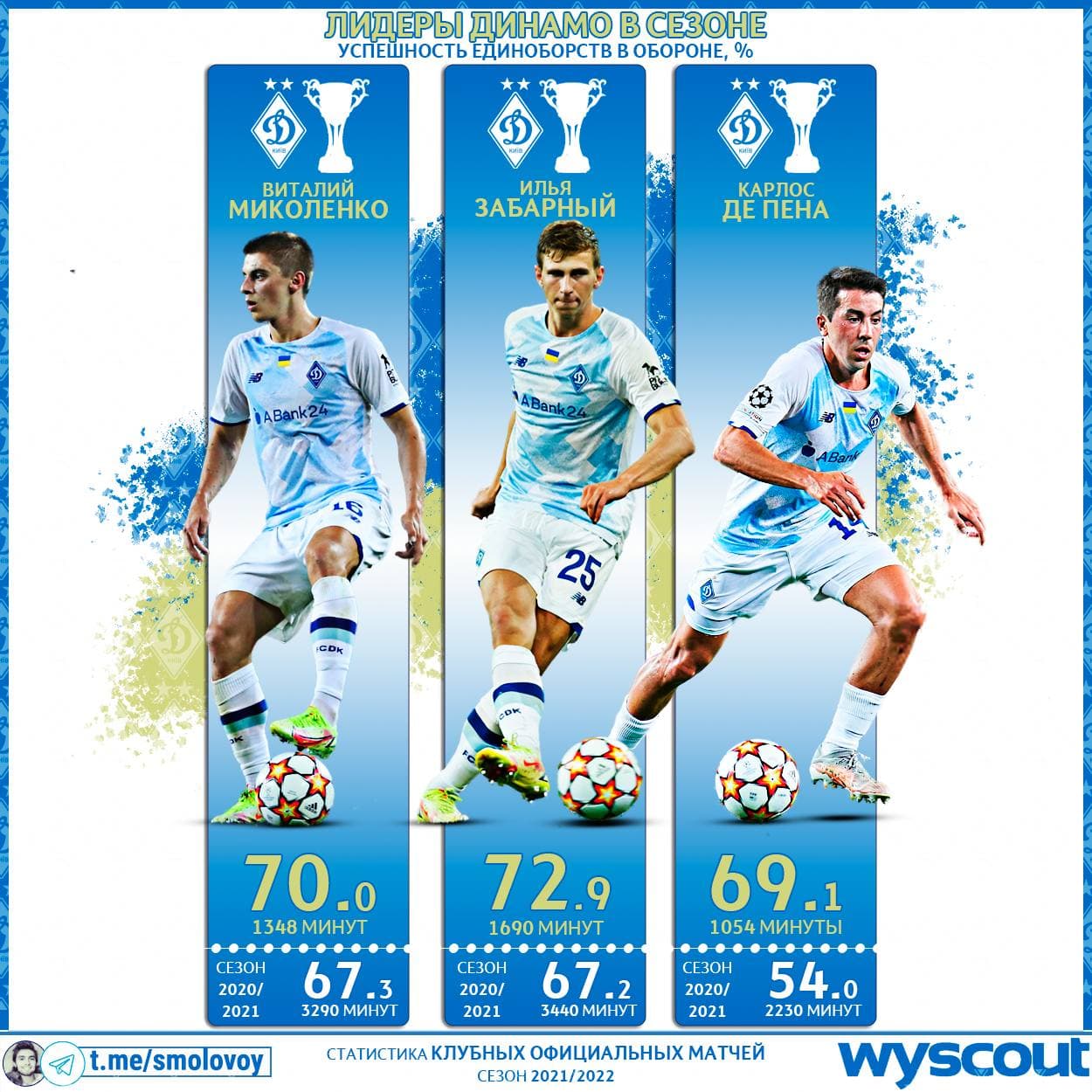 Перед матчем на это всё явно указывали. В общем история странная. Та и в целом не очень характерная. Среди ребят, которые сыграли 25% и более от возможного игрового времени во всех клубных турнирах, наивысшая успешность единоборств в обороне именно у Забарного. Здесь Илья прибавил и в количестве (5.34/90 -> 5.7/90), и в качестве (67.2% -> 72.9%).