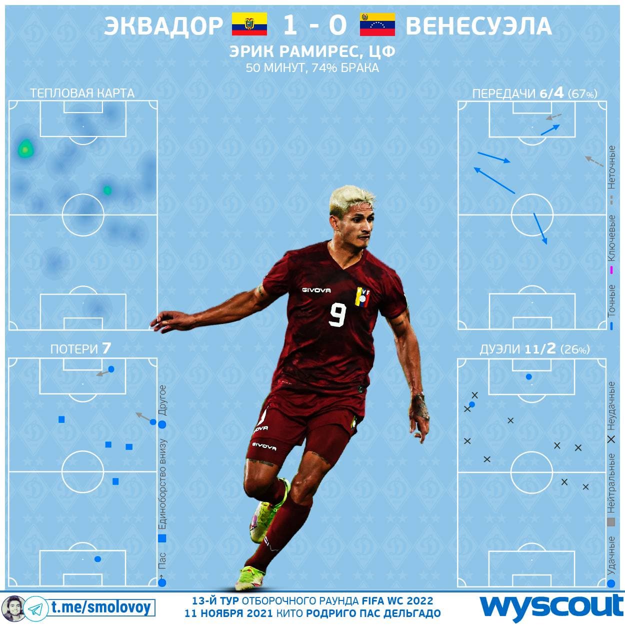Блогер Михаил Смоловой - об игре форварда "Динамо" Эрика Рамиреса за национальную сборную Венесуэлы.