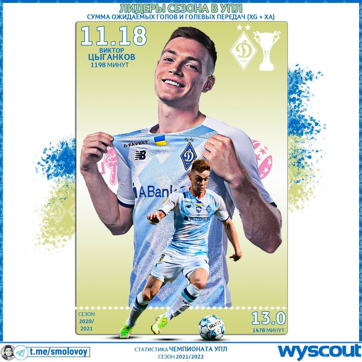 В нынешнем сезоне, тьфу-тьфу, Цыганков сыграл уже 1198 минут, постепенно подбираясь к прошлогодним показателям. На данный момент после 14 туров сумма 11.18 xG+xA является лучшей. Навязать реальную борьбу может разве что только Артём Довбык, который сыграл на 37 минут больше (10.81 xG+xA). Остальные далеко позади.