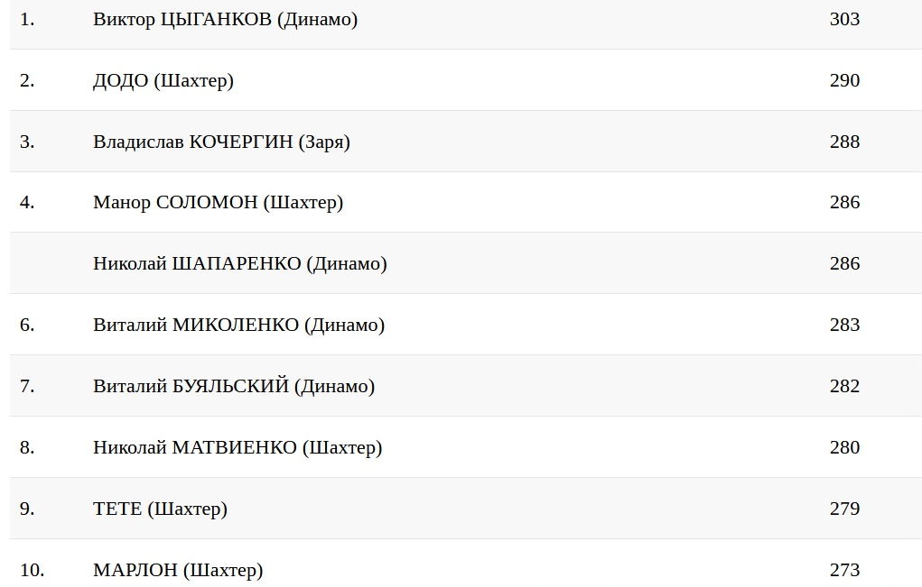 Самым полезным футболистом нынешнего сезона УПЛ по оценкам InStat является полузащитник Динамо Виктор Цыганков, пишет zbirna.com. По итогам 14-ти туров его средний рейтинг эффективности игры составляет 303 балла. В текущем чемпионате хавбек сборной Украины забил девять мячей и отдал одну голевую передачу. В активе Цыганкова 47 ударов по воротам, 26 ключевых передач и 57 обводок.