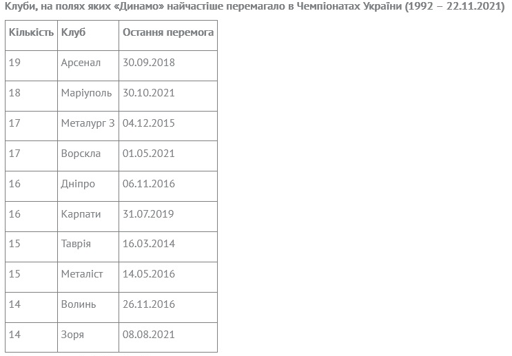 Найчастіше динамівці святкували перемоги на полі «Арсеналу» – 19 разів та «Маріуполя» – 18. Найбільше гостьових вікторій в УПЛ «Динамо» здобувало під керівництвом Валерія Лобановського – 55 перемог та Йожефа Сабо – 38. Найбільше виїзних перемог динамівців зафіксовано з рахунками 1:0 – 63 рази, 2:0 – 57 та 2:1 – 50.