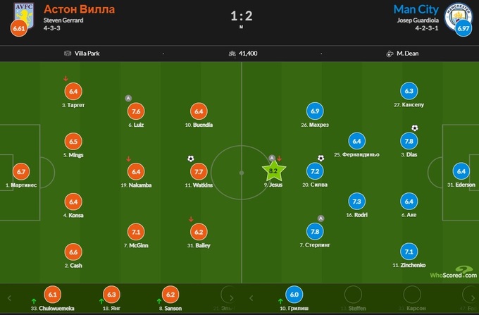 Статистический портал WhoScored поставил украинцу среднюю оценку (7.08). Лучшим игроком матча стал Габриэл Жезус (8.24).
