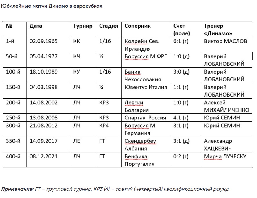 - Динамо сыграло свой юбилейный, 400-й (!), матч в еврокубках: