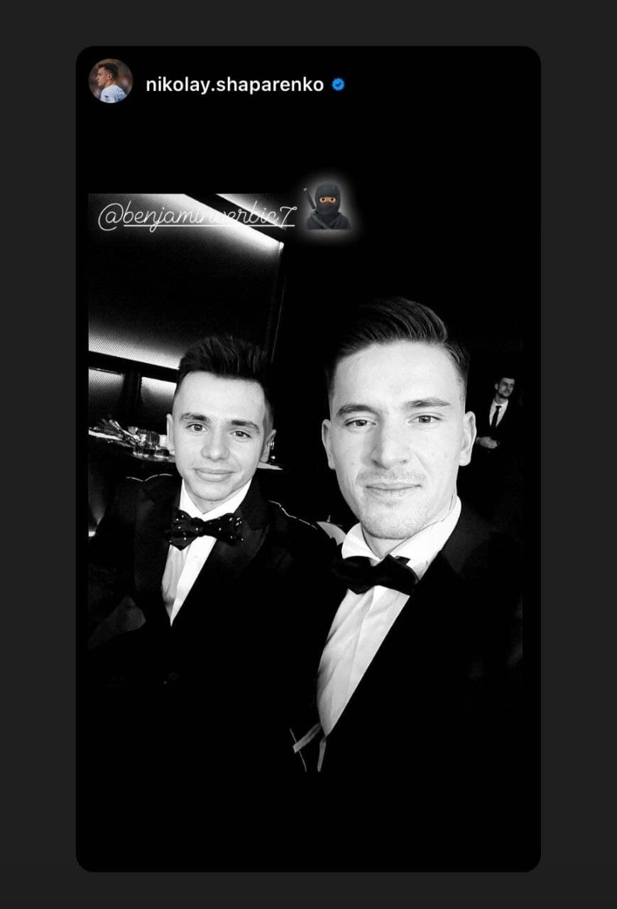 На свадьбе динамовца присутствовали Николай Шапаренко, Богдан Леднев, Владислав Дубинчак, Виталий Миколенко и Беньямин Вербич.