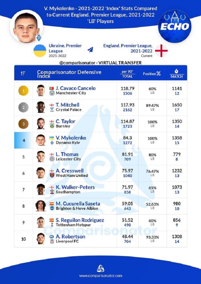 Авторитетное издание Liverpool Echo, вооружившись цифровыми данными от известного аналитического ресурса, попыталось выяснить, почему главный тренер Эвертона Рафаэль Бенитес горит желанием заполучить в свою команду левого защитника киевского Динамо и сборной Украины Виталия Миколенко, пишет zbirna.com.