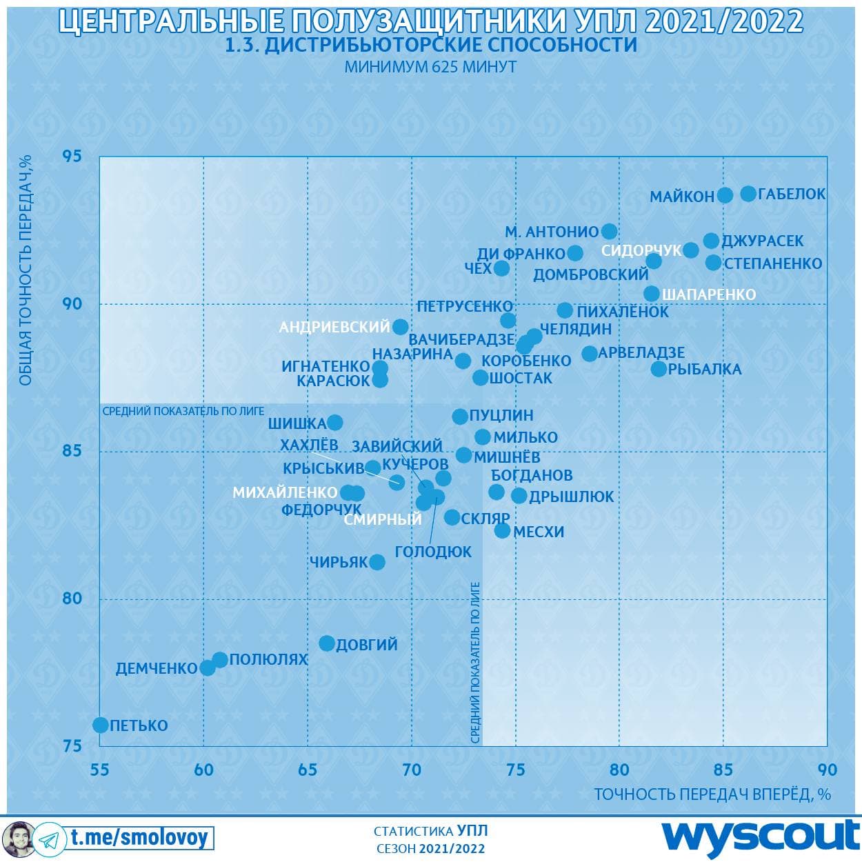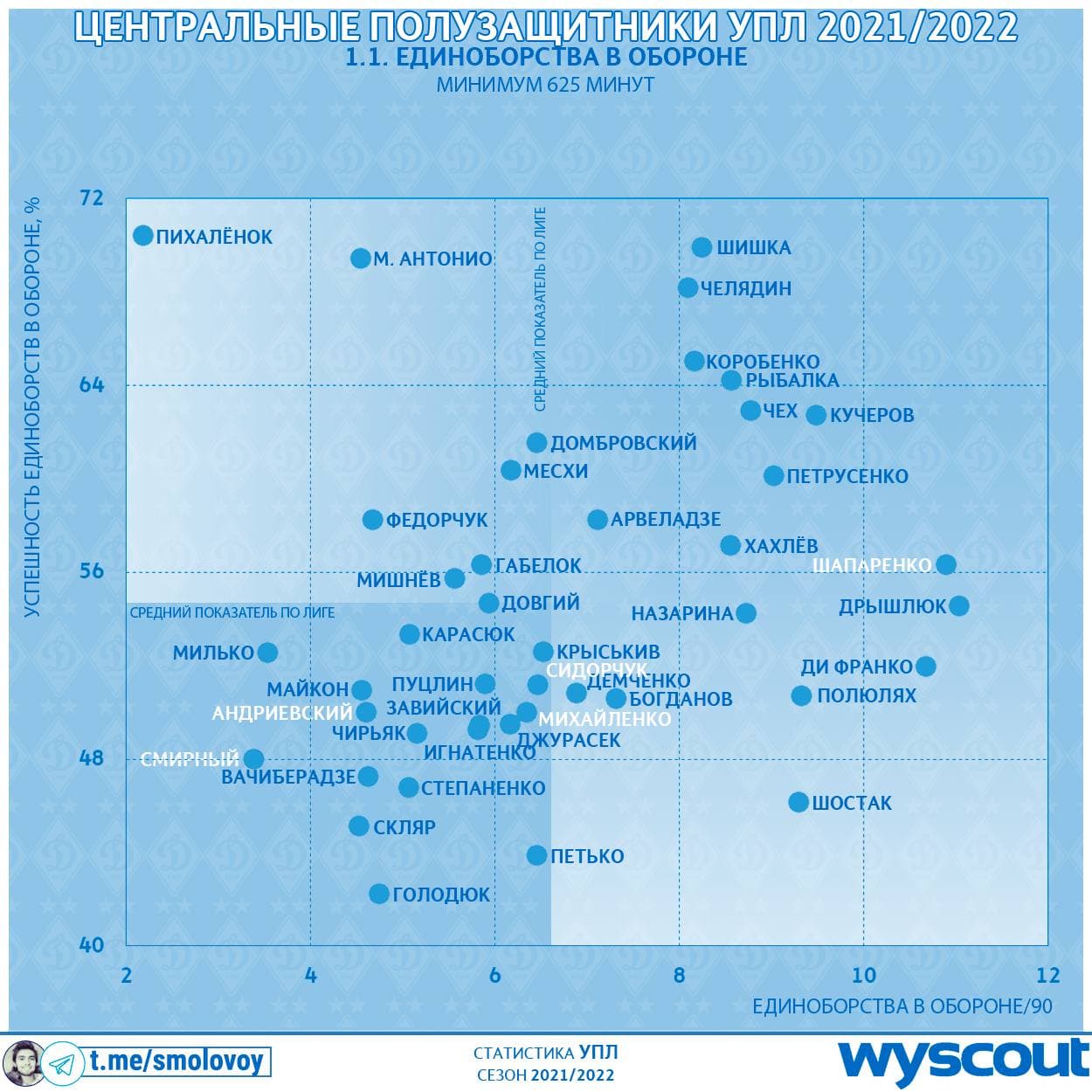 Конечно, есть пласт ребят типа Демченко (Александрия) и Довгого (Львов), которые дают хорошие оборонительные показатели, но в пасовой работе способны удовлетворить разве что извращения Петракова. На их фоне многие кажутся прям крутыми парнями.