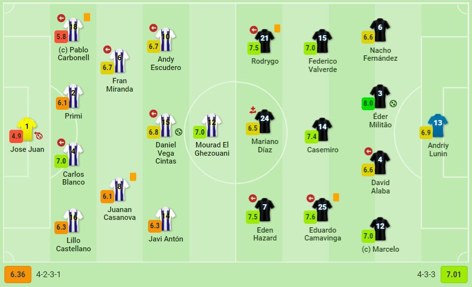 Он провел на поле все 90 минут против «Алькояно» (3:1) в 1/16 финала Кубка Испании. SofaScore оценил его действия в 6,9 баллов – третья худшая оценка среди вышедших в старте после Мариано Диаса (6,5), Давида Алабы (6,6) и Начо (6,6). Средняя в команде – 7,01.