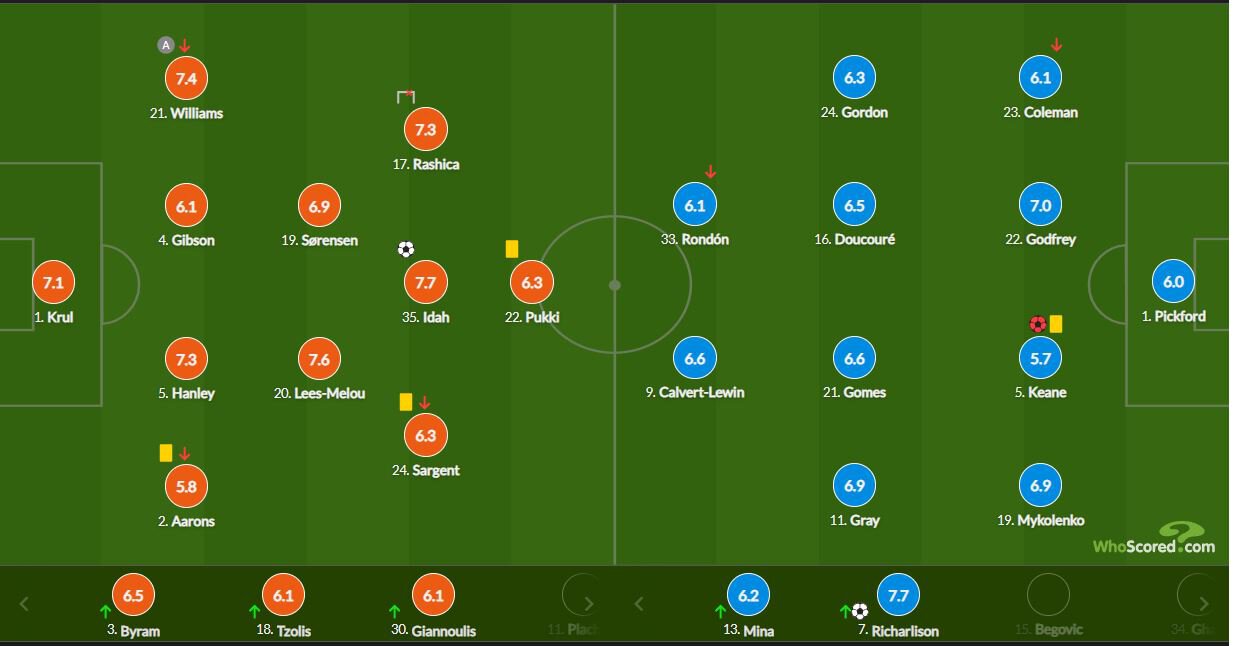 Больше в команде имеют лишь Бен Годфри и Ришарлисон, который отметился забитым мячом.