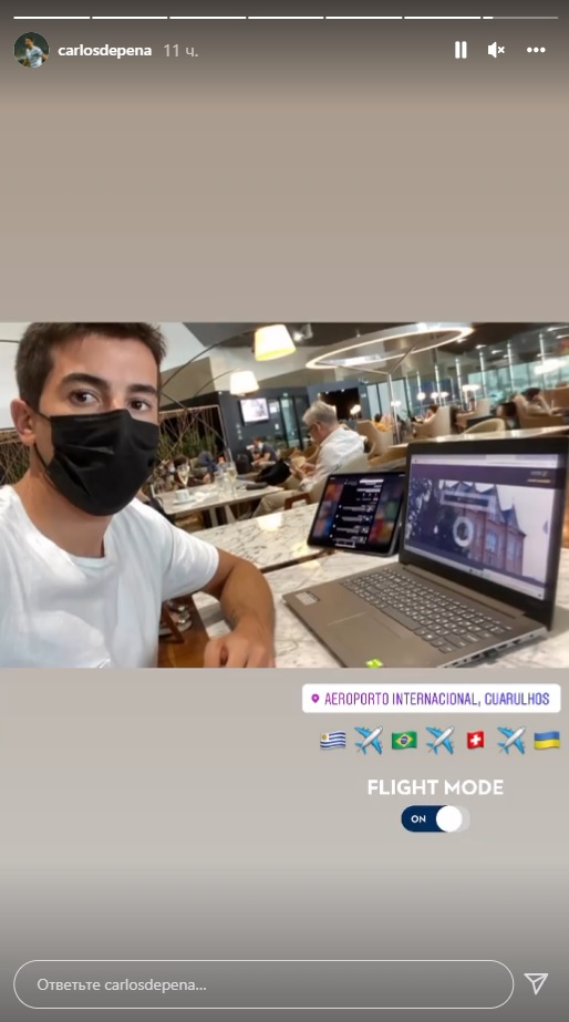 Футболист в Инстаграме отметил, что лететь ему придется с двумя пересадками по маршруту Уругвай - Бразилия - Швейцария - Украины.