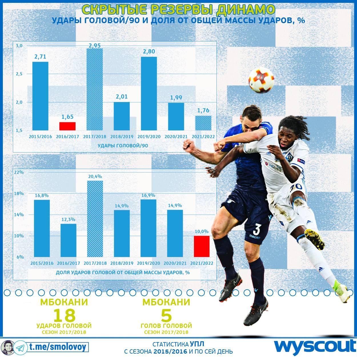 - рекордные для Динамо в УПЛ 5 голов головой за сезон