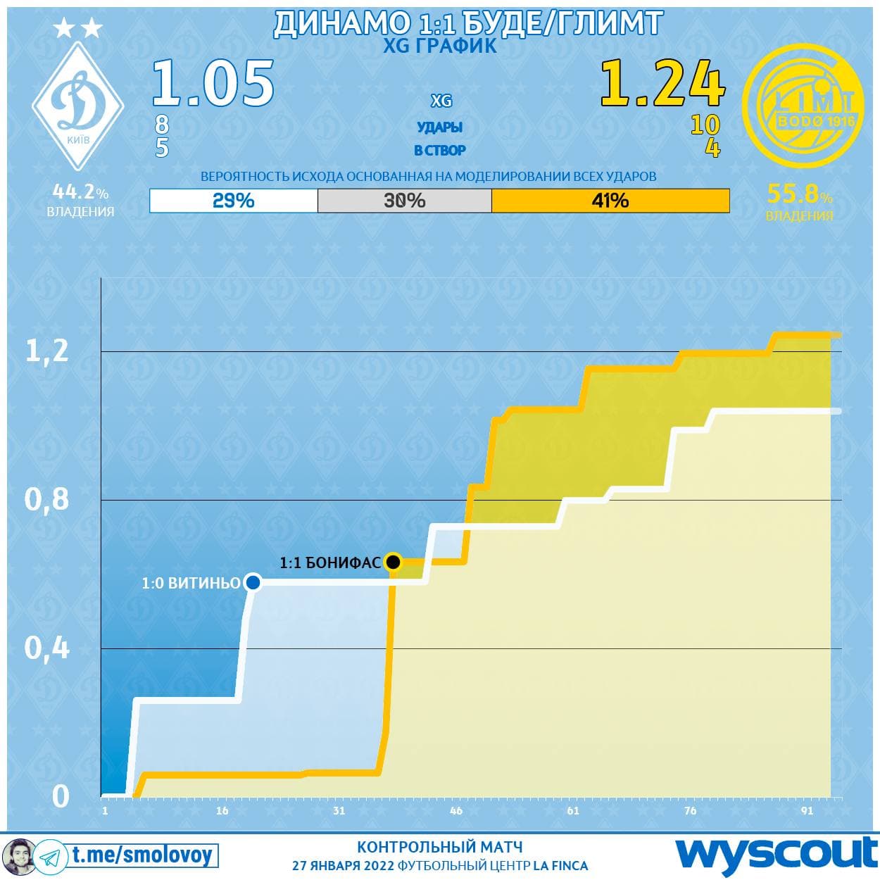 Блогер Михаил Смоловой в своем Телеграм-канале анализирует игру "Динамо" в спарринге против "Буде-Глимта".