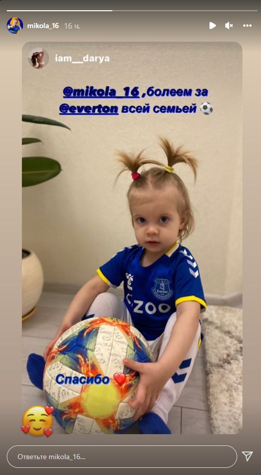 - Миколенко, болеем за "Эвертон" всей семьей, - подписала фото в Инстаграме жена Кучерука Дарья.