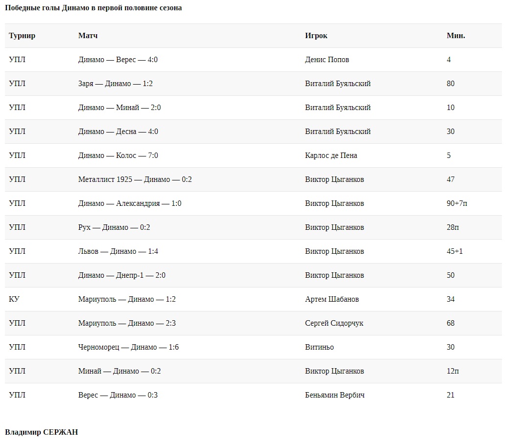 Лидирует по решающим голам лучший бомбардир киевлян в этом сезоне Виктор Цыганков — шесть. В активе Виталия Буяльского три победных результативных удара, у остальных — по одному.