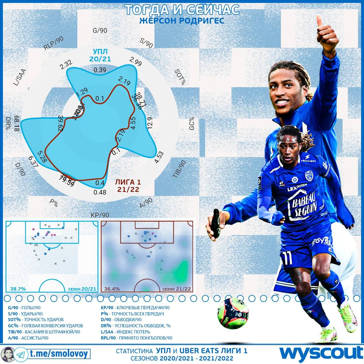 Блогер Михаил Смоловой в своем Телеграм-канале анализирует игру динамовца Жерсона Родригеса за "Труа".