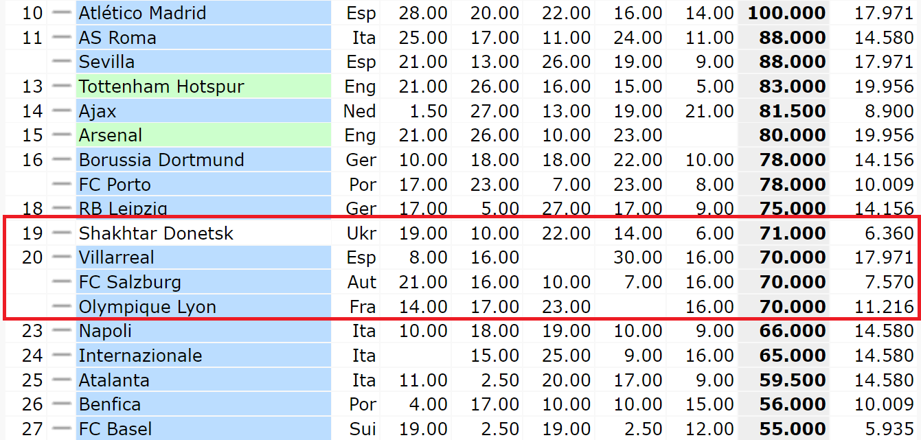Помимо борьбы в Таблице коэффициентов, где Украину больше всего сейчас интересует динамика Бельгии и Швейцарии (показатели Сербии, Греции, Хорватии, Дании и страны-агрессора России важны с учетом следующего сезона), стратегическое значение приобретает борьба в таблице рейтинга клубов. И "Динамо", и "Шахтер" летом будут проходить квалификацию Лиги чемпионов (если не случится сенсации в УПЛ), так что для обоих полезно будет удержаться в рейтинге как можно выше. Это может помочь оказаться в посеве, а также способствовать шансам оказаться в более высоких корзинах при жеребьевке групп.